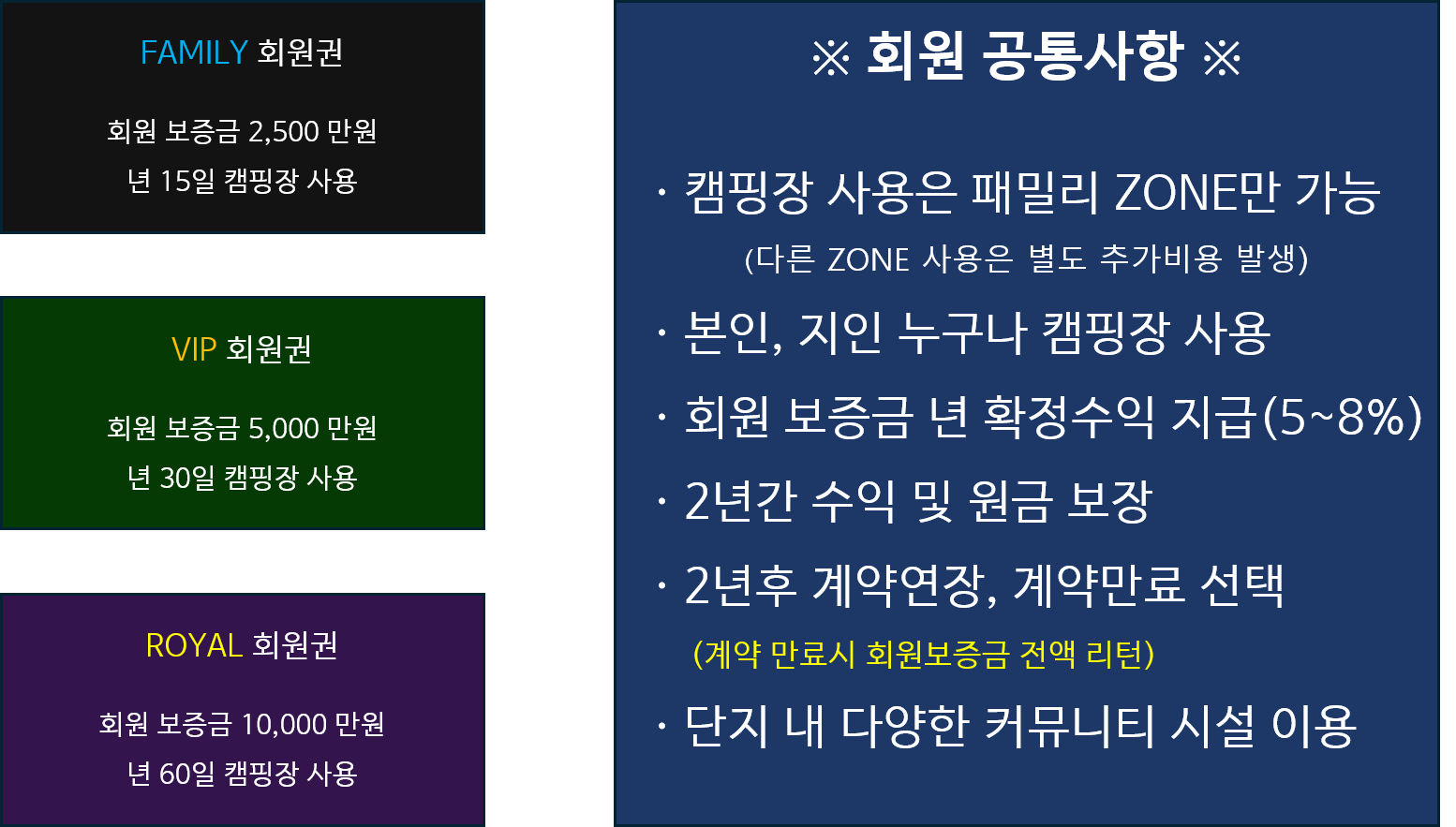 더불어 캠핑장 미사용일에는 안정적인 수익창출까지 이루어지기 때문에 투자가치도 함께 누릴 수 있습니다.